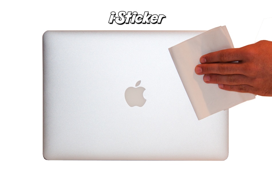 A l'aide d'un chiffon ou d'une serviette humide, néttoyez votre la surface où va être déposé le sticker pour MacBook. Vous pouvez ajouter une goutte de liquide vaisselle pour dégraisser complétement votre MacBook.