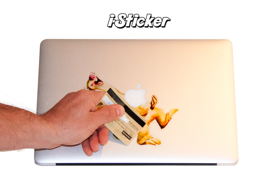Pour coller le sticker dans sa position finale et pour chasser les éventuelles bulles, à l'aide d'une carte bleue, marouflez de l'interieur vers l'exterieur du MacBook.