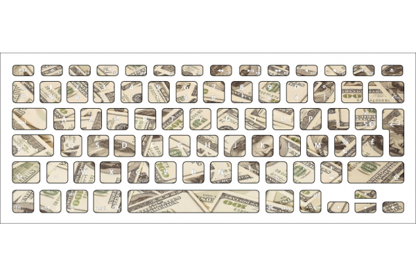 iSticker vous propose la personnalisation du clavier de votre MacBook avec un autocollant "Dollars" original et design.