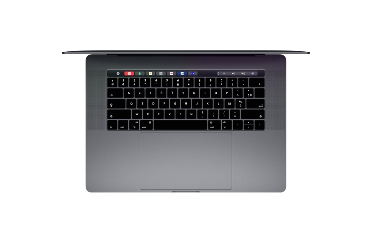 Pour les modèles avec TouchBar, découpez simplement la première rangée de touches avant la pose.