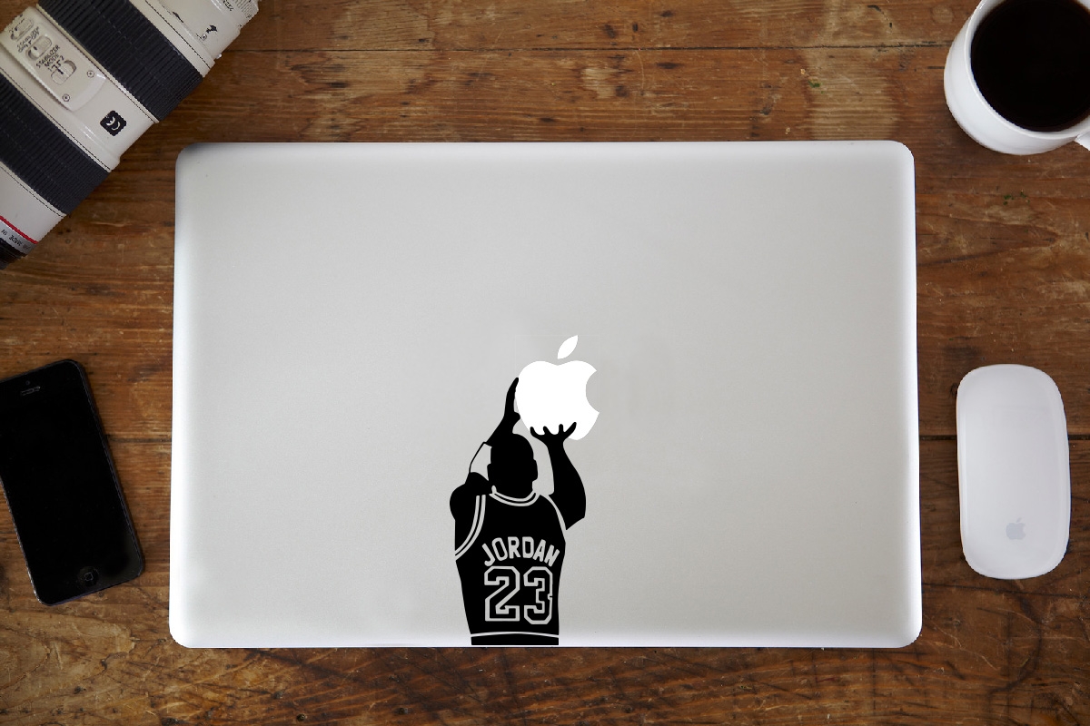 Magnifique stickers mettant en scène Michael Jordan mettant un panier avec la pomme Apple. Sublimez votre MacBook avec un stickers fabriqué de manière artisanale dans notre atelier à Nice. Stickers livré avec un film de transfert déjà posé afin de vous faciliter la pose.