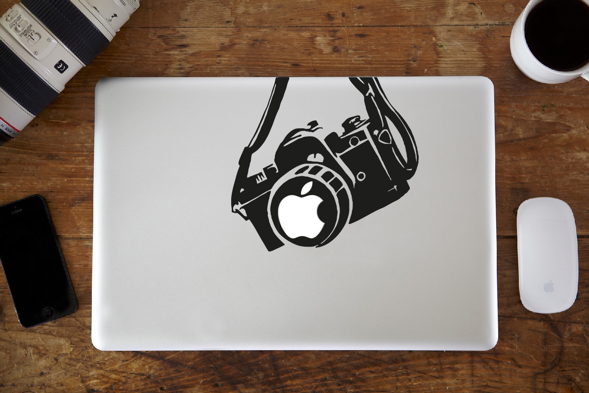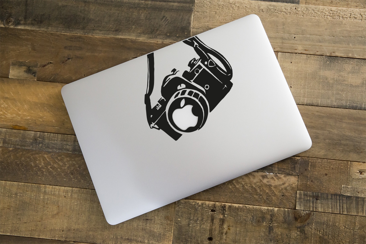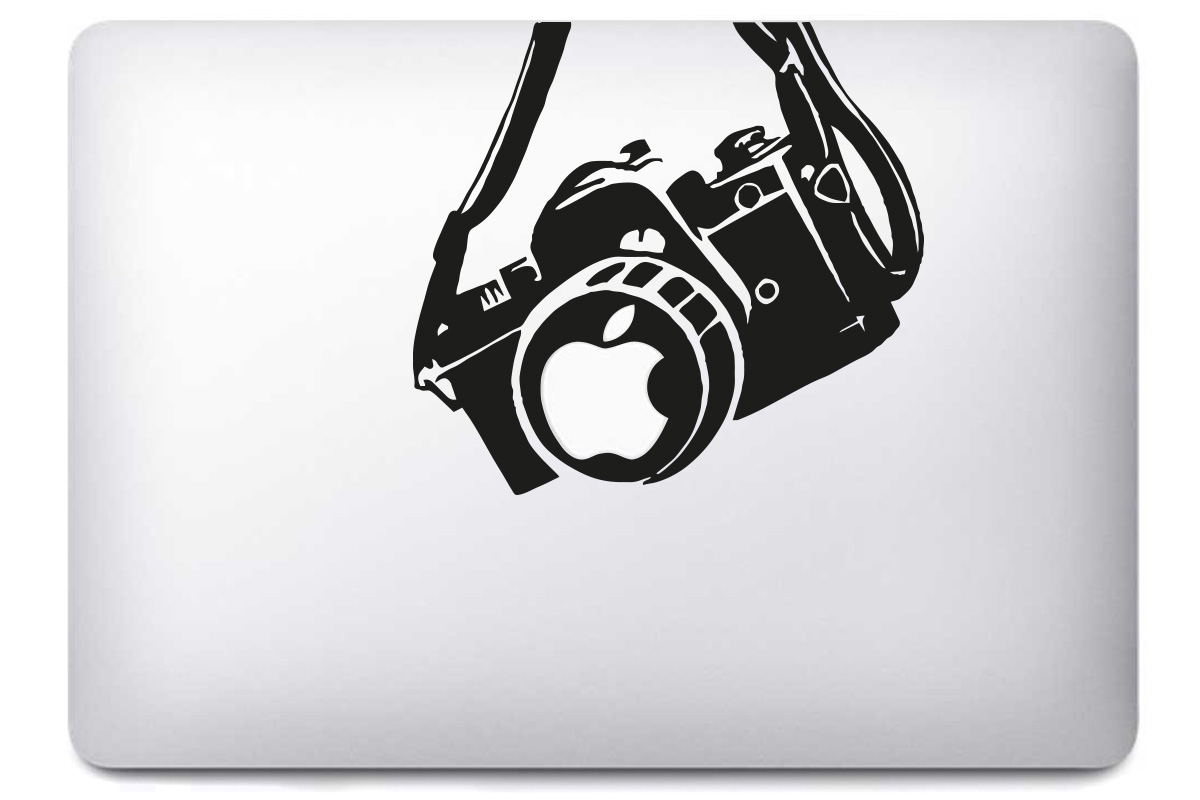 Magnifique stickers Appareil Photo Suspendu pour MacBook Pro ou Air. Ce stickers pour Mac représente un appareil photo suspendu noir ou blanc.