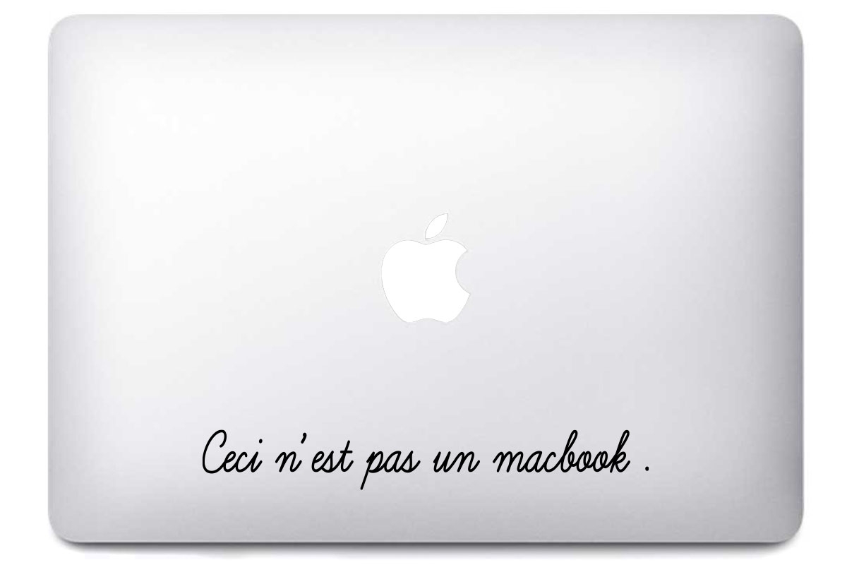 Personnalisez votre MacBook grâce à ce magnifique sticker "Ceci n'est pas un MacBook". Donnez une touche d'originalité à votre MacBook grace à cet autocollant "Ceci n'est pas un MacBook".